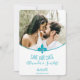 Meddela din kommande bröllopsdag till familj och vänner med detta enkla och eleganta Akvamarin Fleur de Lis Foto Spara Datum-kort. Spara datum-designen har välvd kant utsmyckad med en akvamarinfleur-de-lis som ramar in ditt eget foto. Ytterligare färger finns tillgängliga med denna design också. Om du behöver hjälp med anpassning, vänligen kontakta mig direkt.