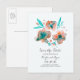akvamarin spara datumet - akvarell blommor meddelande vykort