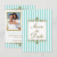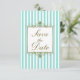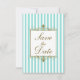 Akvamarin, vita ränder Guld Scroll Save the Date-k Spara Datumet