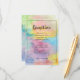 För en färgrik och livlig bröllopsfest, överväg en inbjudan som presenterar en fantasifull abstrakt akvarellmålning i en mängd glada nyanser. Målningen är densamma på båda sidor; framsidan har en tunn mörkgrå ram och din information i mörkgrått. Gula, rosa, lila, blå, gröna och turkosa nyanser ger en trendig och cool tie-dye-effekt. Texten för din personliga information är enkel att anpassa med hjälp av textmallarna och redigeringsmenyn. En verkligt unik bröllopsinbjudan! Fantasifull, originell konst och design av Tuzi Williams.