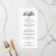 Lugn akvarell berg meny kort med träd.