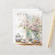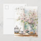 Fira vårens skönhet med detta mjuka, måleriska Hello Spring-vattenfärgspostkort som visar ömtåliga rosa blommor arrangerade i en vintagekeramikkruka bredvid en mysig teservis. Utfört i en luftig pastell palett av rosafärgad, pudrig blå, salvia grön, kräm och varma neutrala toner, fångar detta konstverk charmen hos cottagecore och europeiskt inspirerad stillebenillustration.