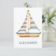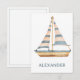 Det här söta vykortet har en vacker akvarell segelbåt med blå och krämfärgade ränder. Personifiera med ditt val av namn eller speciell text.