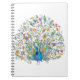 Akvarell blommande påfågel anteckningsbok