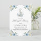 Sätt tonen för en ofölig kväll med en anpassningsbar repetitionsmiddagsinbjudan med en mjuk akvarellblomma förankrad design. Skira vita och blå blommor skapar en förfinad kustnära känsla, perfekt för eleganta förbröllopsfiranden. Anpassa med namn, datum, tid och lokaldetaljer för att matcha din evenemangsstil. Idealisk för tema som kust, nautiska eller klassiska bröllop, denna inbjudan erbjuder ett vackert sätt att välkomna dina närmaste gäster.