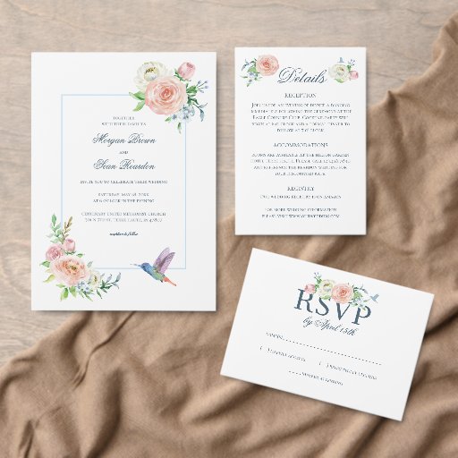 Färdigställ din bröllopsinbjudan med detta eleganta akvarellblommiga Detaljerkort, designat för att samordnas sömlöst med den matchande inbjudan och svarskort. Med mjuka pastellfärgade blommor, kolibri-detalj, klassisk typografi och en ren, lättläst layout är detta kort perfekt för att dela all din viktiga bröllopsinformation på ett ställe.