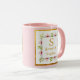 Personlig rosa & guld blommig initial kaffemugg, skräddarsydd namnpresent till henne.