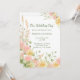 Vacker rosa och gyllene akvarell blommande krukmönster med grön skrift och typografi på detta eleganta brölloppsinbjudan.