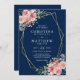 Akvarell Blommig Rosafärgad Marinblå Bröllop Inbjudningar