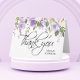 Vackra moderna bröllopsdusch eller bröllop tackkort. Akvarell blommig lavendel, syrlilja, viol, lila bukett. Skript topografi bokstäver. Personifiera dem genom att lägga till din text i kortet eller RADERA all text för personligt handskrivet meddelande.