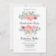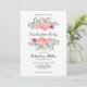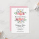Vacker blommig inbjudan med rosa akvarellblommor på vit bakgrund