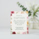 Fira din speciella dag med detta eleganta akvarellblommiga bröllopsdetaljkort, med en romantisk arrangemang av handmålade botaniska blommor i mjuka naturliga nyanser. Inspirerad av vintage trädgårdsbröllop och lantlig charm, förenar denna design klassisk elegans med en modern minimalistisk layout.