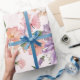 Modern och elegant Rosa Lila Blommig och botanisk vildblomma, Akvarell fjärilar tema omslagspapper .Sött och vackert, detta omslagspapper har en akvarell-målad vildblomma och blomsterbakgrund med akvarell-fjärilar i lila och rosa färg mjuk, men modern.
