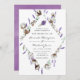 Trendig handmålad lavendel- och bomullshöst/vinterbröllopsinbjudan med lila akvarellbakgrund.