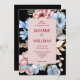 Denna eleganta inbjudningsdesign har vackra blå och rosiga blomsterakvareller med klassisk typografi,.