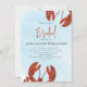 Denna design har en enkel akvarell röd hummer bröllopsdusch-inbjudan, med en QR-kod för webbsidans URL-länk till evenemangssida på sociala medier, med en nautisk hummer-baka-fest, en kustnära ocean hav, perfekt för inbjudan till middagsparty med skaldjur, med en stilren trendig typsnitts text, en modern kalligrafiskript typografi, med en Maryland New England Maine-kuststil, lekfulla hummerben kokta bakade, en elegant stilig rolig vattenocean, med ett kräftdjur rött blått marint djur, med en blå vatten, ocean, hav nautisk inbjudan
