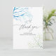 Trendig bröllopsfest tackkort med marinblått och vitt havstema med sjöfrukter, tång och sjöstjärnor som kan anpassas snabbt och enkelt till ditt evenemang.
