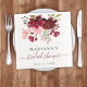 Burgunder och rosa akvarell blommiga bröllopsdusch pappersservetter för att dekorera festsal med vacker elegant skrift.
