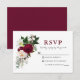 Elegant Akvarell Burgundy Blommig Grönska Bröllop RSVP-kort inkluderar peonior, eukalyptusblad och annan vacker grönska.