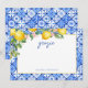 Akvarell citroner italienska blå kakel bröllopsdusch tackkort.