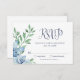 Lätta, luftiga akvarell dammiga blå och marinblå blommor och grönska på framsidan med en matchande blomsterbukett och parets namn och bröllopsdatum på baksidan. Kontakta formgivaren om du vill ha denna design ändrad eller på en annan produkt för att komplettera din brölloppssvit eller mottagningsdekor och tillbehör.