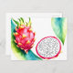 Akvarell Drakfrukt i djärva färger på vit bakgrund Vykort