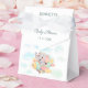 Denna förmånslåda är speciell tack vare sin charmiga, mjuka akvarellillustration av en bebis elefant som flyger ett flygplan mot en molnig bakgrund. Den ljusa, könsneutrala färgpaletten och personaliseringen med evenemangsinformation gör den till en perfekt, fantasifull, färdig att fylla behållare för godsaker eller små presenter. Den är idealisk för en "Upp Upp och Bort" eller resetemat baby shower.