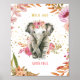 Akvarell Elefant Rosa Blommor Flickrum Poster
