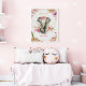 En vacker elefant med ömtåliga blommor ovanför hennes huvud. Vild och bedårande. En vacker affisch för att dekorera rummet eller barnkammaren för din flicka.