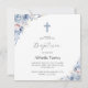 Akvarell Elegant Dammig Blå Blommig Dop Baby Inbjudningar