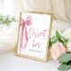 Skylten "Watercolor Elegant Blush Pink Bow: She's Tying the Knot" Dessert Bar lägger till en touch av sofistikation och sötma till alla bröllops- eller brudshowerns dessertstation. Med en delikat akvarelldesign med ett rosa bandmotiv sätter skylten tonen för gästerna att njuta av läckra godsisar. Oavsett om den visas på en staffli eller inramad på dessertbaren, fungerar den som en charmig fokuspunkt medan den guidar gästerna att tillfredsställa sin söta tand. Skylten förstärker inte bara stämningen på evenemanget utan säkerställer också att gästerna enkelt kan hitta och njuta av en härlig mängd desserter.