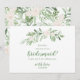 Enkel och elegant, det här bröllopskortet "Elegant Watercolor Ivory Rose Be My Bridesmaid Wedding Request" är det perfekta sättet att fråga dina väninnor att vara en del av ditt bröllop. Funktionen är handmålade akvarell elfenbensvita rosor med gröna blad på en gren ovanför förfrågan till din vän att vara din brudtjänare eller brudmäklare. Baksidan har blommor över hela ytan. Alla gröna texter kan ändras för att passa dina önskemål för bröllopet, inklusive ett alternativ för "vill du vara min brudmäklare".