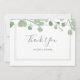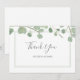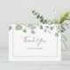 Elegant akvarell Eukalyptusblad platt tack-kort. Vacker nyans av salvia grön parat med ett modernt script-teckensnitt. Perfekt för ett bröllop eller brud shower.