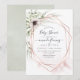 Bebis duscheinladning med anemoneblommor och eukalyptusblad i en roséguld geometrisk ram.