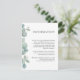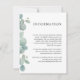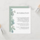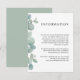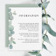 En vacker akvarell eukalyptus grönska ram höjdpunkter på detta moderna bröllopps informationskort som används för att ge era brölloppsgäster detaljer, hotellinformation, er bröllopswebbplats eller annan användbar information kring ert bröllop. Anpassa exempeltexten som visas i textmallen med era önskade detaljer. Dessa kort kan skickas som ett kuvert med era bröllopsinbjudningar. En svit med matchande brevpappersprodukter finns tillgängliga i denna design för att koordinera ert bröllop eller evenemang i vacker stil.