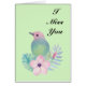 bild av en akvarell rosa blå och grön fågel som sitter på en blomma och blad. bilden av blomman är rosa och bladen är nyanser av grönt, blått och lila. text kan ändras eller raderas på framsidan och text kan läggas till på insidan. baksidan har bilden av gröna blad.