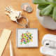 Akvarell färggladt träd fyrkantig silverfärgad nyckelring