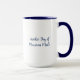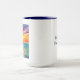 Vacker solnedgång över den färgrika vattenkaffemuggen. Citat, "En till dag med minnen gjorda. Blå och gul. "generativt innehåll
