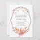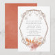 Rosa blomsterterrakotta-pars bröllopsinbjudan med glitterram designad för att snabbt och enkelt anpassas till ditt evenemang. Kredit till chocolatesque.