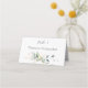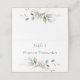 Elegant vikbar platskort med en illustration av gröna och gyllene blad i akvarellstil. Du kan ändra bordnumret efter dina behov (2, 5...7...10...) - varje gång ett nytt kort, och lägg till alla dessa kort i din varukorg.