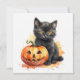 Akvarell Halloween Svart Kittens och Pumpa Julkort