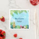 Element av en rolig hawaiisk luau med vattenfärgsmotiv finns på denna servett som passar perfekt för en ö-ceremoni. Tropiska blad och blommor omger konstverkets kant mot en mjuk blå himmel. En ananas och kokosnötter är utspridda bland löven. Använd den till vilken luau-firande som helst, inklusive en bröllops- eller sällskapsfest, endast mottagning, födelsedagsfest, möhippa eller svensexa eller bara vilken strand- eller ö-tema tillställning som helst. Finns även med matchande produkter.