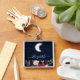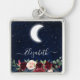 Akvarell Himmel Celestial Måne Stjärnor Blommor Fyrkantig Silverfärgad Nyckelring