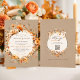 Personalisera denna unika och eleganta rustika kraftvattenfärg höstblommiga orange och bruna allt-i-ett bröllopsinbjudan med mjuk terrakotta och salvia grön blomsterkrans cirkelram med enkel skrift på en sofistikerad rustik kraftbakgrund på framsidan, och en vapensköldsformad blomster ram på baksidan med QR-kod och bröllopswebbplats för att dina gäster ska kunna svara digitalt på din stora dag! Lägg enkelt till din text och ladda upp din QR-kod för att göra den unik. Beställ tryck + kuvert, och/eller den omedelbara digitala filnedladdningen - perfekt för evites, eller för att skriva ut hemma eller skicka till det tryckeri du väljer. Anpassade designförfrågningar, produkt tillägg till kollektionen och mall frågor är alltid välkomna - klicka på "meddelande" kn