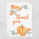 Tacka dina gäster för att de kom till din hösthögtid, oavsett om det var en barnkalas, bröllopsfest, bröllop eller födelsedag. Detta kort har en akvarell-pumpa med höstfärgade blad. Lägg till ditt meddelande på baksidan eller lämna det tomt och skriv ett meddelande till dina gäster för hand.