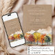 Personalisera denna eleganta akvarell höstliga skogsbergsscen i rustik kraft till bröllopet allt-i-ett-inbjudan med mjuka terrakottaorange, guld, bruna och gröna akvarell hösträd och bergslandskap med enkla skrivstil detaljer på framsidan, och din QR-kod och bröllopswebbplats för dina gäster att svara digitalt på din stora dag på baksidan. Lägg enkelt till din text och bröllopswebbplats för att anpassa QR-koden och göra den unik för dig. Beställ utskrifter + kuvert, och/eller den omedelbara digitala filnedladdningen - perfekt för evites, eller för att skriva ut hemma eller skicka till det tryckeri du väljer. *Kraftdesign är en kvalitetsutskriven bild som ser ut som riktigt rustikt kraftkort! Anpassade designförfrågningar, produkt tillägg till kollektionen och mallfrågor är alltid välkomna - klicka på "med