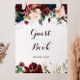 Denna akvarellillustrerade höstblommiga gästboksskylt är perfekt för ett enkelt bröllop eller brudvisning. Designen har konstnärligt handmålad akvarell i marinblå, burgunderröd, röd, rosafärgade rosor och pioner med eleganta gröna blad som inspirerar till den färgrika idylliska höstskönheten.