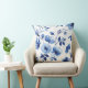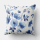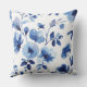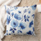 Akvarell isblå blommig kastkudde, handmålad mjuk blå akvarellblommor.