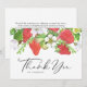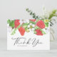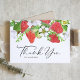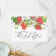 Skicka tack med detta botaniska tackkort. Det har en akvarellillustration av jordgubbar, blad och vita blommor med ett fantasifullt typsnitt. Personifiera genom att ändra namn och meddelanden. Detta jordgubbs-tackkort är perfekt för privat bruk samt för sommarbröllop, baby shower och andra evenemang.