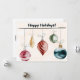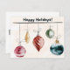 Vattenfärg julbubblor Glad jul Postkort. Fem julgransbubblor målade i vattenfärg med snören dragna med en tuschpenna, på en ljus bakgrund med texten "Glad jul!". Söt och rar. Perfekt för de tillfällen då man inte vill eller behöver vara för religiös med sina julhälsningskort. Kortet kan köpas som ett fysiskt exemplar eller som en digital nedladdningsbar högupplöst fil att skriva ut själv. Glad jul, alla!